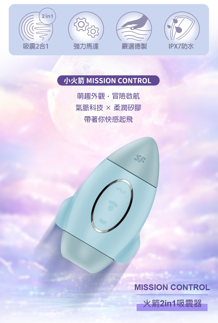 品名:Satisfyer|Mission Contro|火箭吸吮陰蒂震動器 粉藍