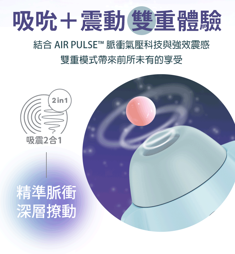 吸吮+震動 2 合 1,雙重體驗直擊敏感