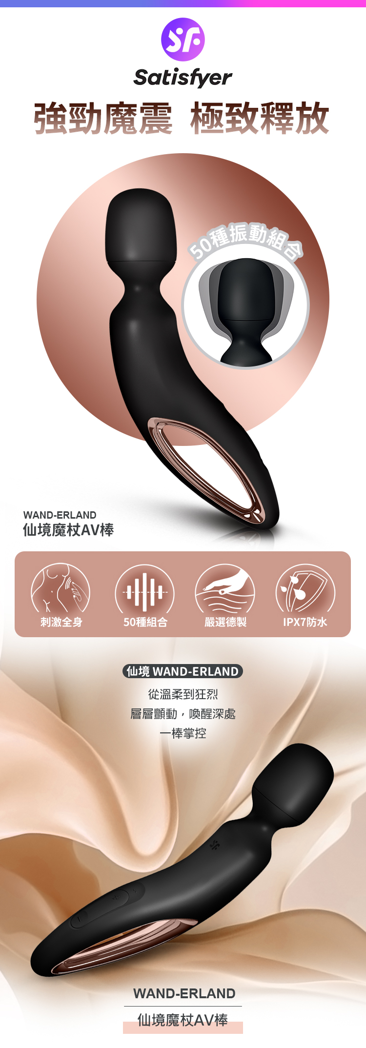 品名:Satisfyer|Wand-erland|仙境魔杖 AV按摩棒 黑